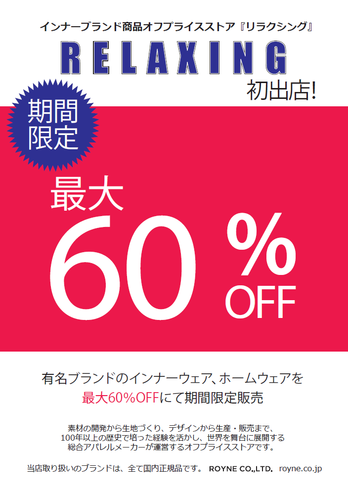 お時間を気にせず、お買物からお食事までゆっくりとお過ごしください。