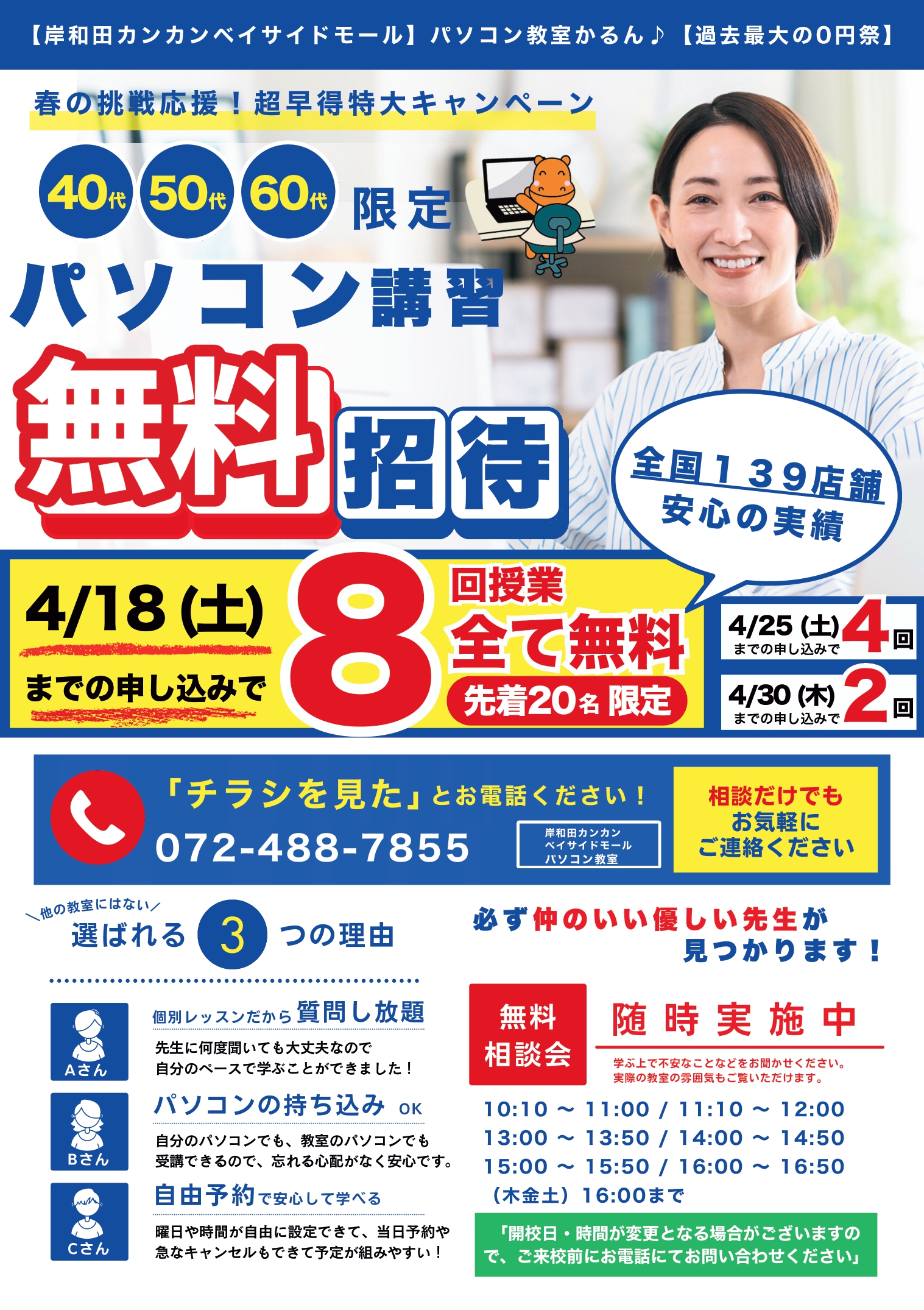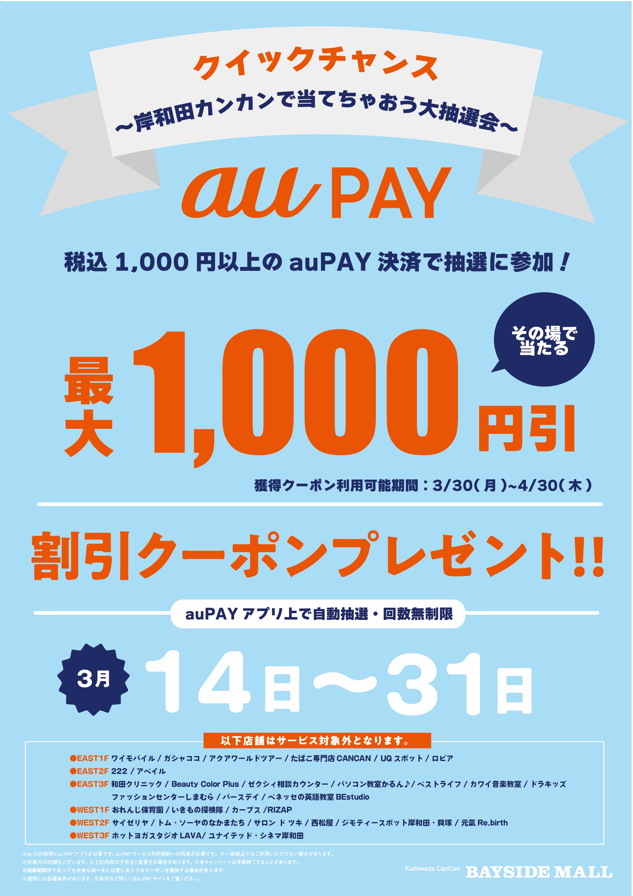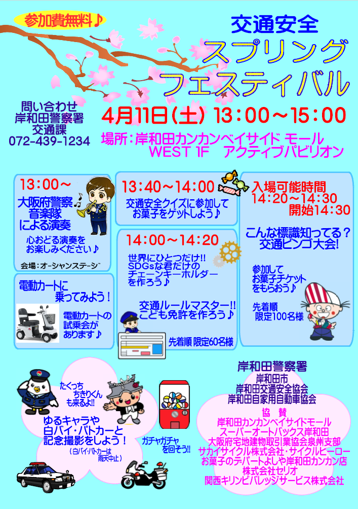 岸和田カンカンベイサイドモールは、駐車場 終日無料となります。