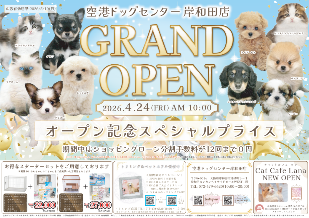ペットショップ「空港ドッグセンター岸和田店」オープン記念イベント開催!